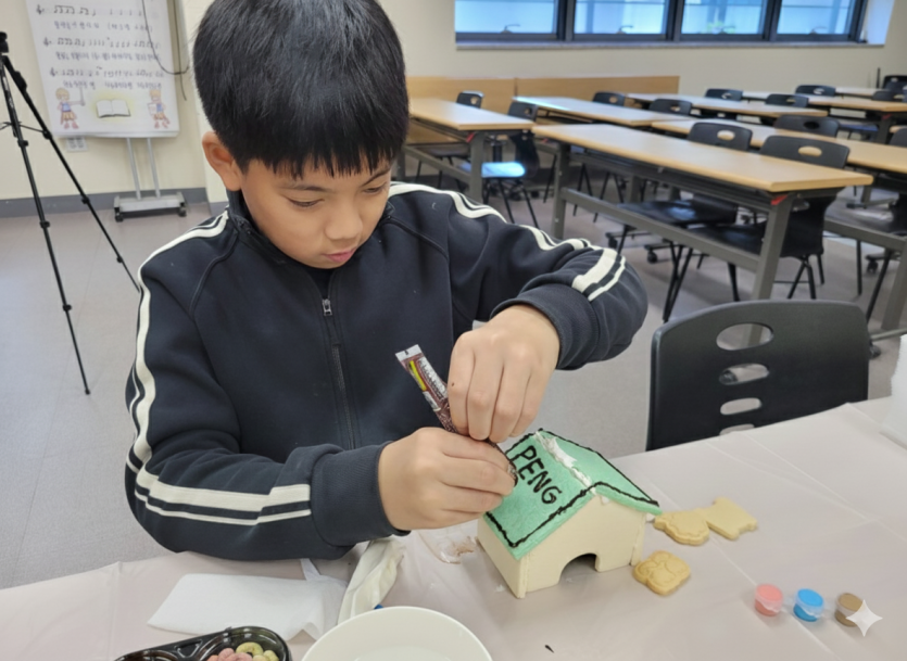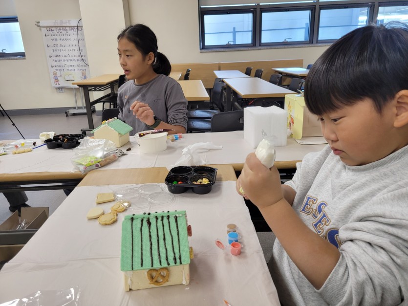 2025.11.21(금)"Happy English Day" 둘째 날 오후, "Making a Cookie House" 활동으로 즐거운 한때를 보냈습니다.