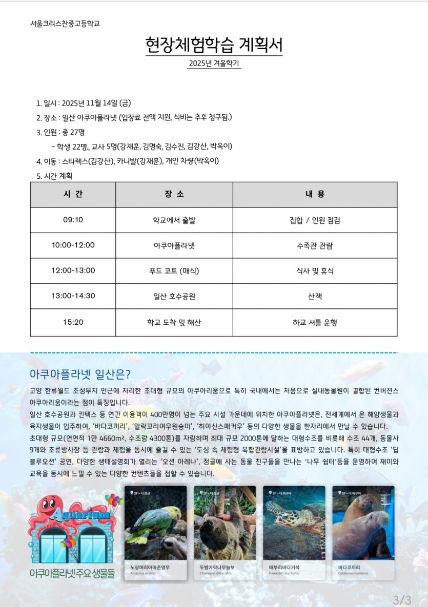 다음과 같이 겨울학기 현장체험학습 계획을 안내 드립니다.